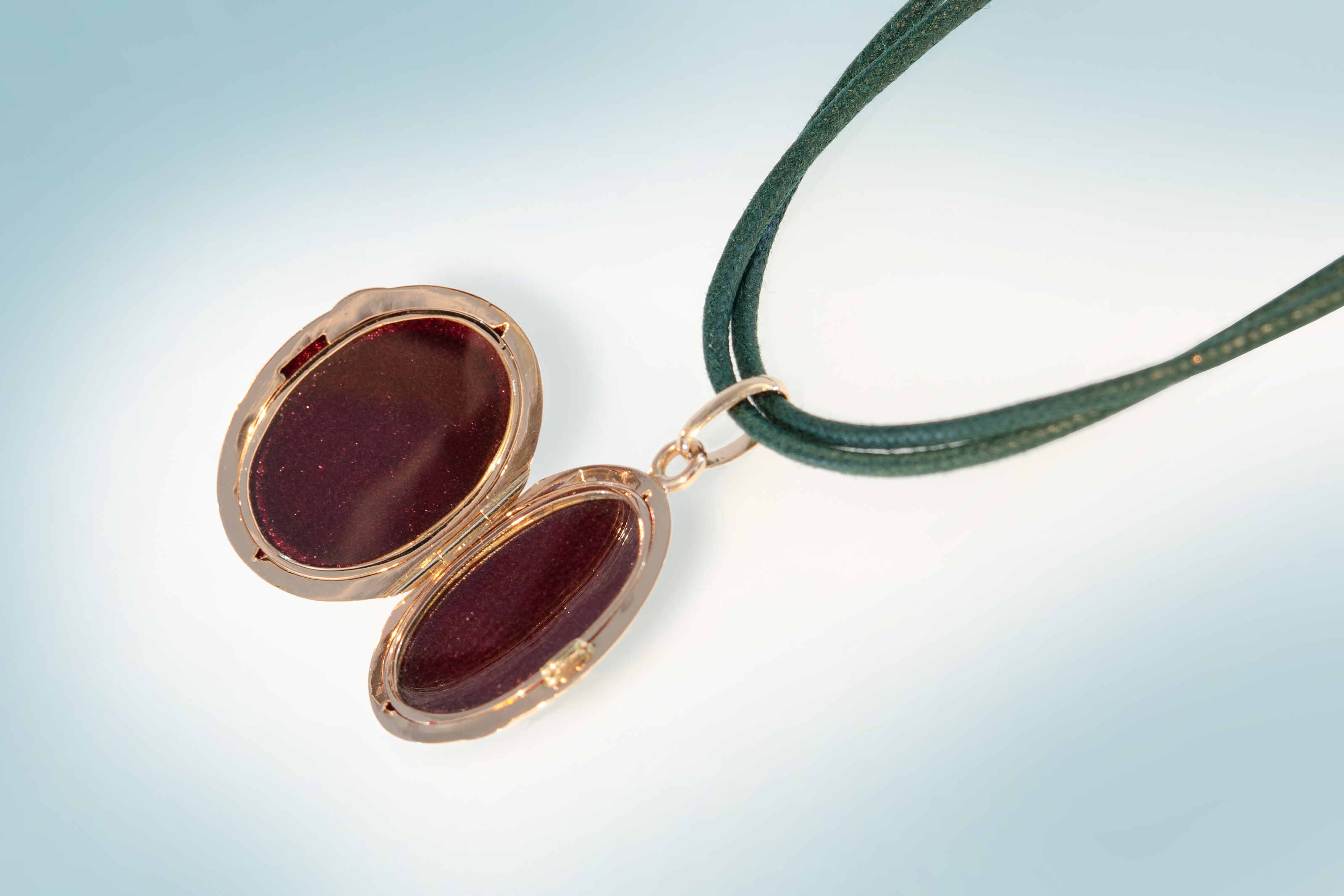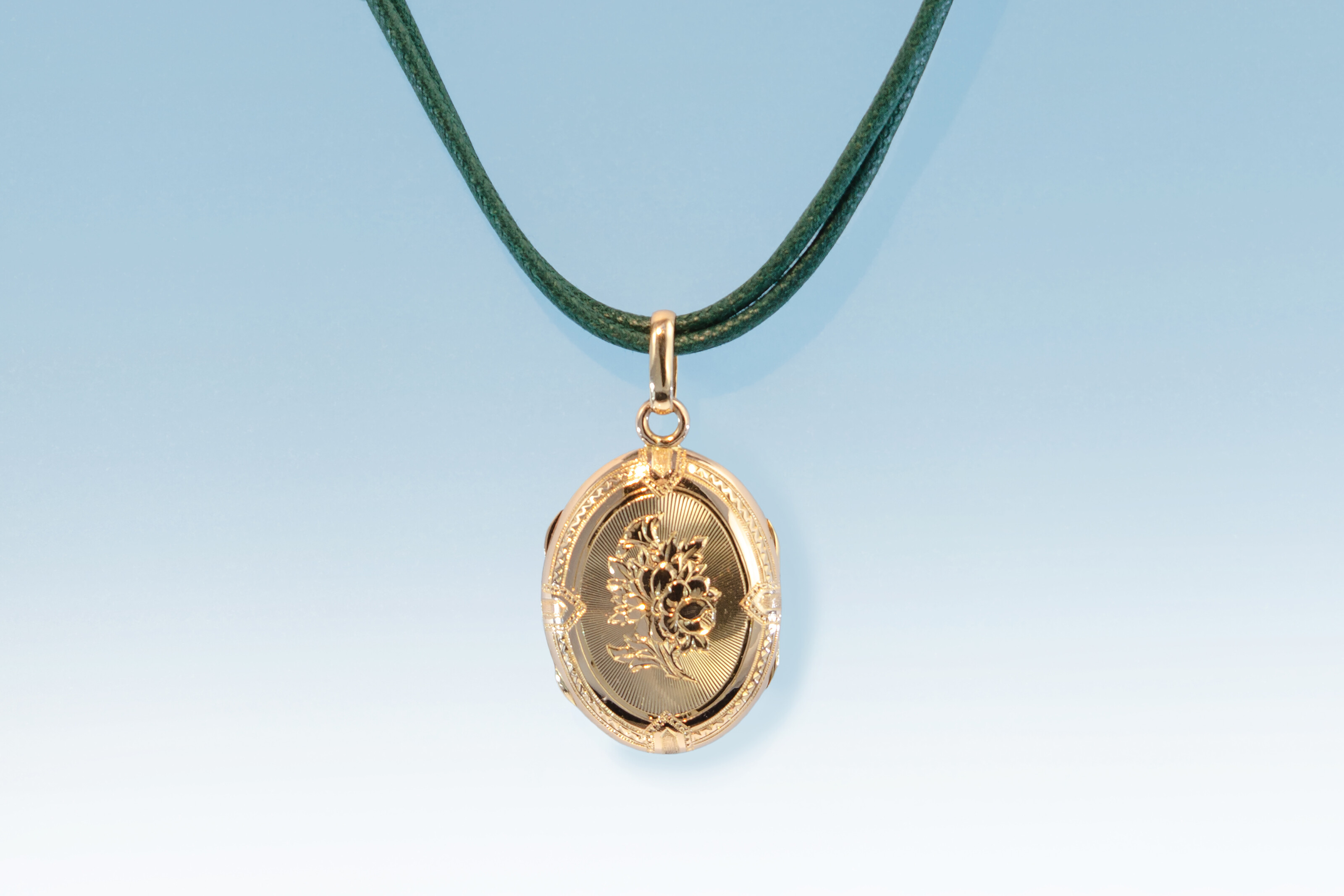 Schönes Médaillon aus Rotgold 750, welches wir in die Mitte des 19. Jahrhunderts datieren. Der Anhänger ist beidseitig sehr hübsch graviert, misst 23 x 30 mm und kann geöffnet werden. Auf der Innenseite ist Platz für zwei Fotografien, welche unter Glas sicher aufbewahrt sind.